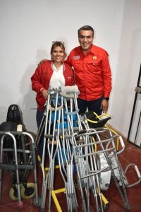 Este material de rehabilitación, el cual será de mucho beneficio para las y los carboenses, consiste en: Muletas, silla de rueda, cómodos para baño, así como un robot que funciona para poner de pie a personas que no pueden hacerlo por sí mismas, para recibir sus terapias.