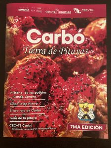Directora General de CECyTE, Dra. Blanca Valenzuela se agradece enormemente la proyección dada a nuestro municipio en la revista CECyTE Contigo edición Carbó: Tierra de Pitayas. Por compartir el talento de CECyTE en la semana cultural con la exhibición “aves que sobrevuelan la sierra huérfana” por el Mtro. Martín Cuen Tánori y con la presentación musical del Mtro. Alán y el Manuelón.
