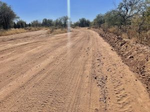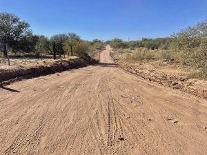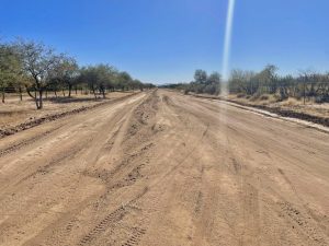 Se realizan trabajos de raspado con motoconformadora, en el camino vecinal que comprende el tramo de Carb贸 a Opodepe.